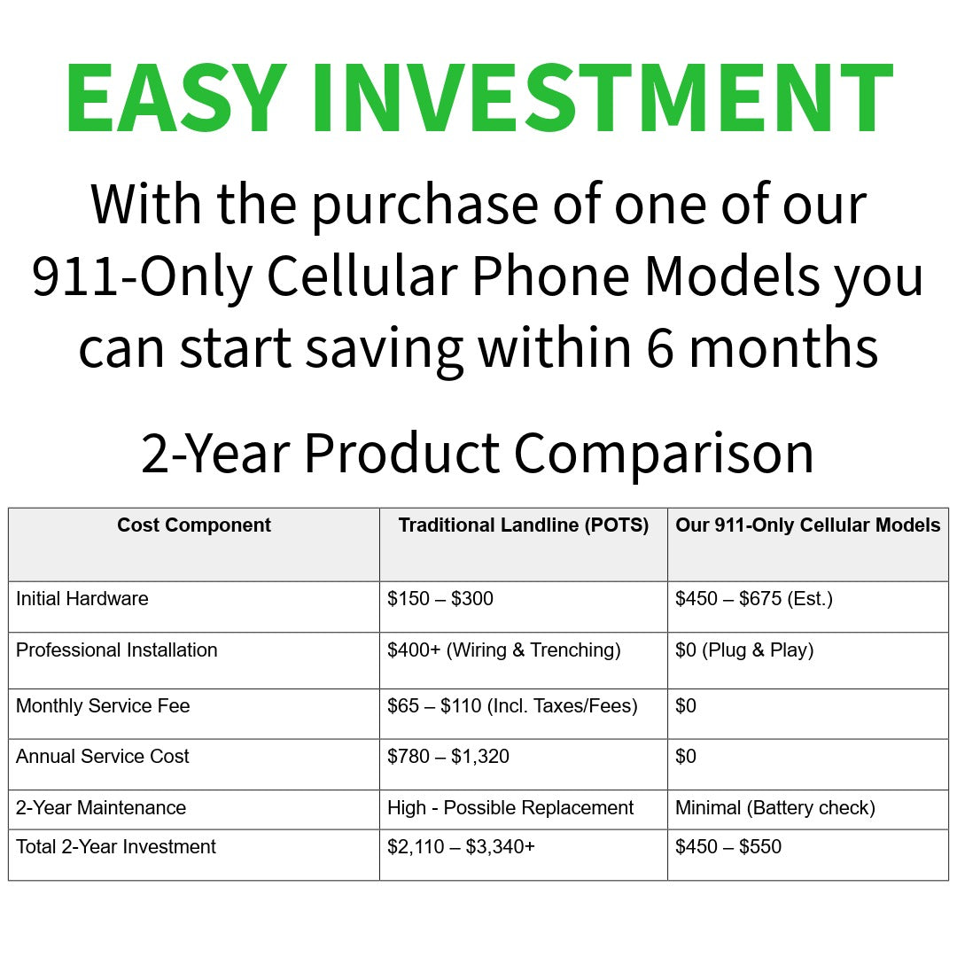 Pro Tip for Property Managers: Traditional landline costs are rising at an average of 15% per year. Switching to a 911-only cellular model pays for itself within the first few months of operation.
